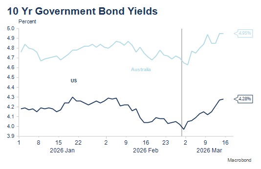 Wednesday 18 March – FOMC meeting (overnight). No change in interest rates expected by Marex (and the markets). Focus will be on the Powell press conference and the extent to which current oil price rises constitute a new inflationary challenge. RBA releases half-yearly Financial Stability Report.